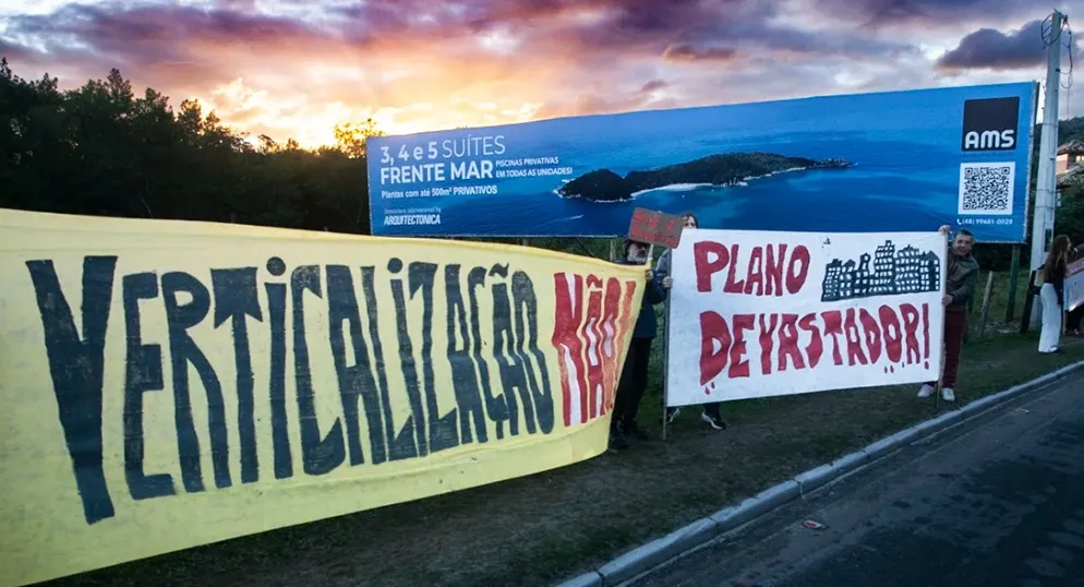 Imagens de manifestações contra a verticalização no sul da ilha de Florianópolis